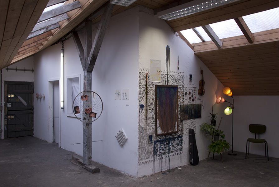HBKsaar, Saarbruecken, Rundgang 2013, Dependance in der Handwerkergasse im Weltkulturerbe Voelklinger Huette, Grundlagenausstellung im Dachatelier betreut von Prof. Beate Mohr und Prof. Ralf Werner
