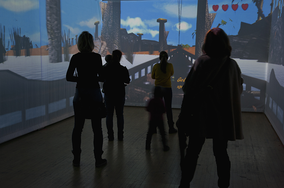 Hochschule der Bildenden Kuenste Saar, Rundgang 2014, Media Art und Design im Dachatelier, interaktives Spiel "Korallenriff" der Studierenden Johanna Puhl, Pascal Klein, Pascal Ziegler, Markus Frei, Stephan Just betreut von Prof. Burkhard Detzler, Michael Schmitz, Janosch Obenauer, Mert Akbal