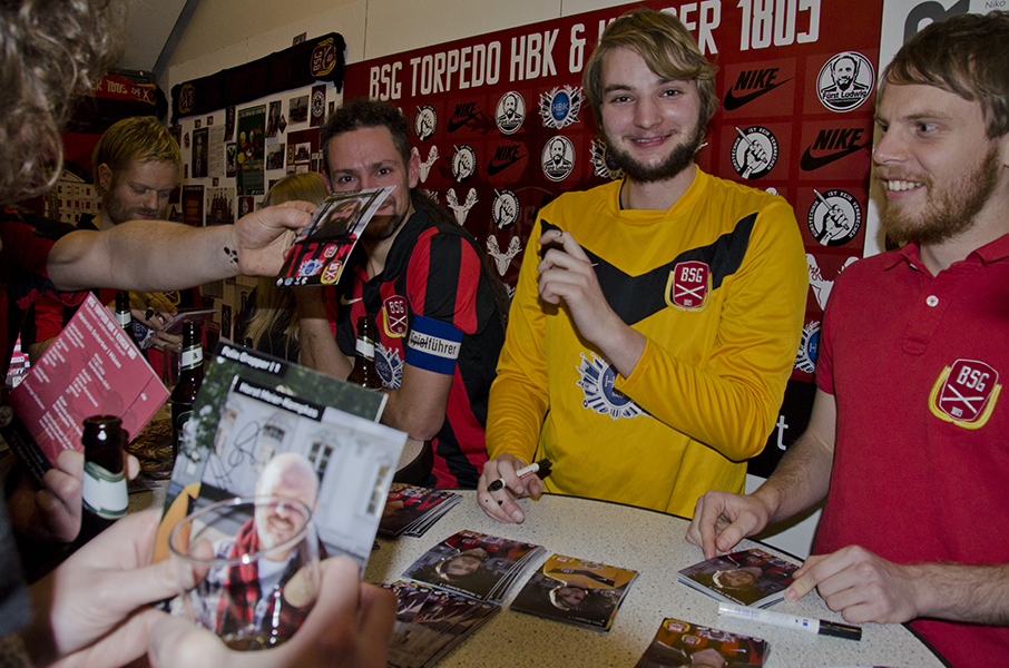 Hochschule der Bildenden Kuenste Saar, Rundgang 2014, Rektorin Prof. Gabriele Langendorf und die Studierenden Lisa Marie Schmitt und Richard Engel kochen in der Mensa Suppe für die Rundgangbesucher